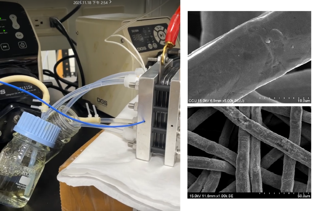 Overall, the performances of water electrolysis, CO₂ conversion, and flow-battery storage depend on efficient, durable, and cost-effective electrode materials. To accelerate commercialization and reduce electrode cost, our team focuses on low-cost materials such as carbon, stainless steel, and nickel for developing electrodes used in water electrolysis and CO₂ electrochemical conversion. We also provide customized electrode components and testing services for material developers, supporting both experimental research and system-level integration. Currently, we have developed a stainless-steel-electrode for water-electrolysis with competitive performance, and we are now advancing toward large-scale commercial electrolysis systems to support future industrial deployment.